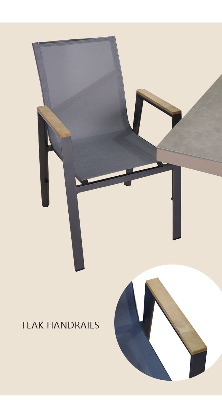 Questo set adotta un design nero elegante e classico per portare una bellezza unica nel tuo cortile, prato e giardino.Il telaio in lega di alluminio verniciato a polvere e la resistenza alla ruggine e agli agenti atmosferici garantiscono un uso esterno a lungo termine.Il design ergonomico e il resistente tessuto in textilene aiutano a ridurre la tensione muscolare e lo stress, in modo che gli utenti non si sentano stanchi dopo essere stati seduti a lungo su queste sedie.L'elegante design moderno a doghe rende il tavolo rettangolare espandibile robusto e lucidato con eleganza.Perfetto per cene o feste con la famiglia e gli amici più stretti e te stesso.
