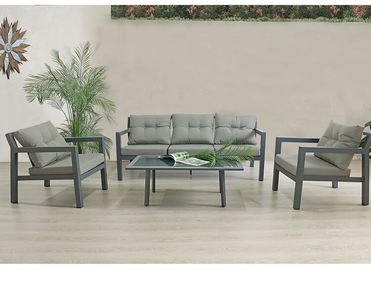 Trasforma il tuo patio in un rifugio rilassante con questo splendido set di 4 divani con cuscini spessi e morbidi per un comfort assicurato.Un divano 3 posti, 2 posti singoli e un tavolino da caffè abbinato offre posti a sedere generosi e spazio di servizio per te e i tuoi ospiti per gustare un rinfresco sotto il sole.Ogni mobile è indipendente e può essere riorganizzato secondo le proprie preferenze.